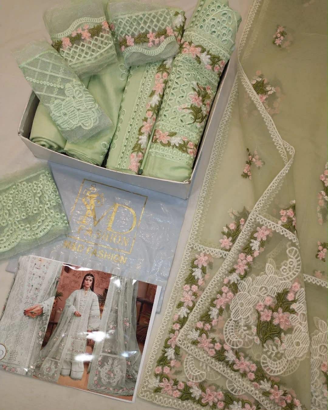 ADAN LIBAS PISTACHIO CHIKNKARI LAWN UNSTICHED