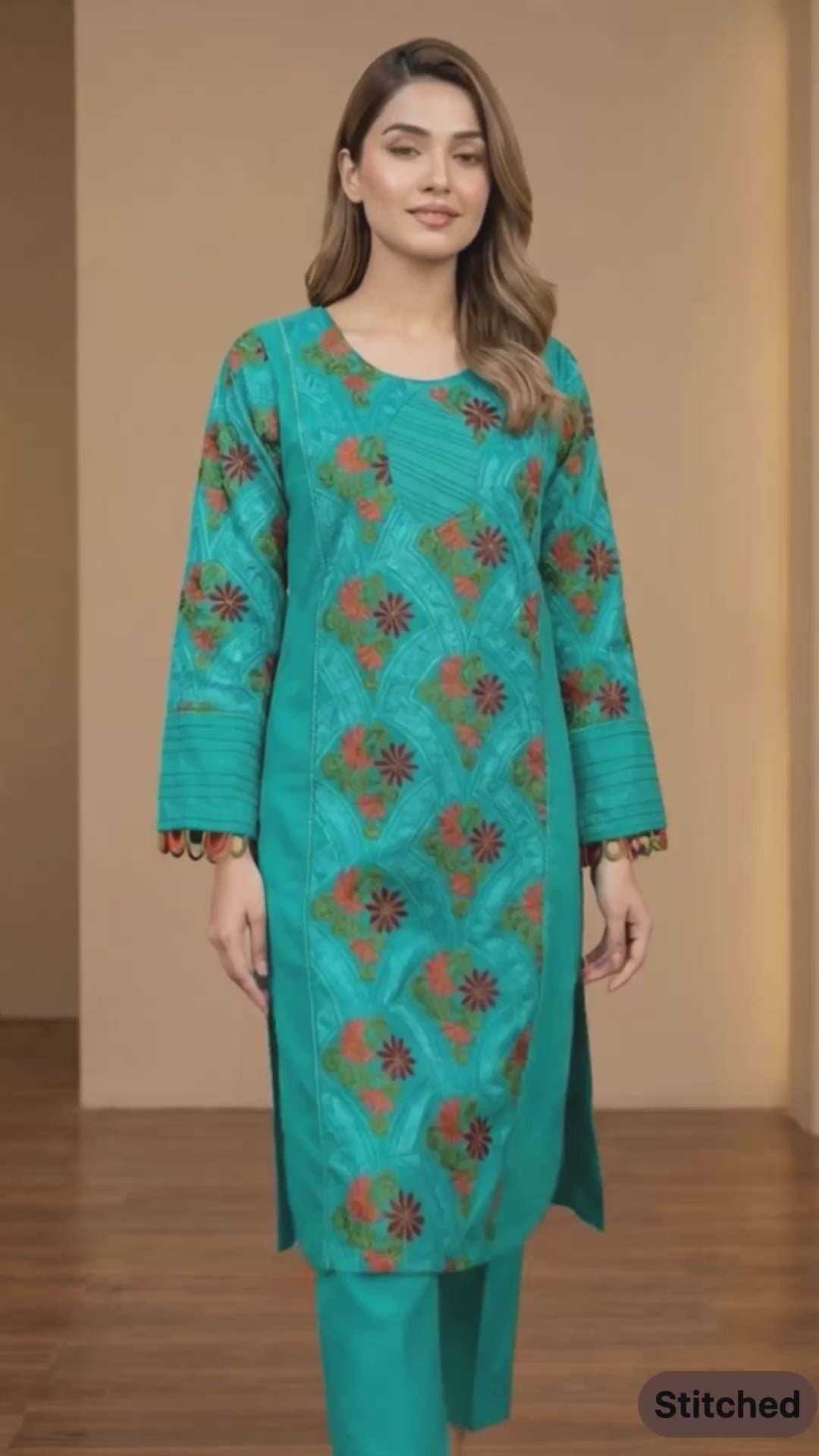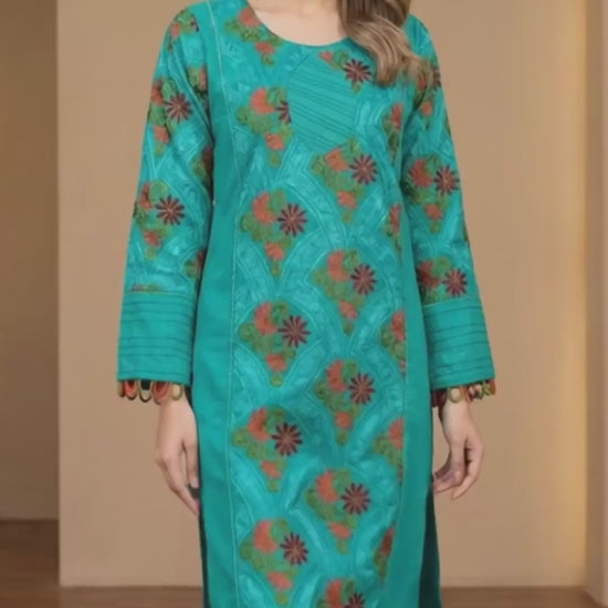 Alkaram STICHED Winter Wear – Teal Embroidered Shirt