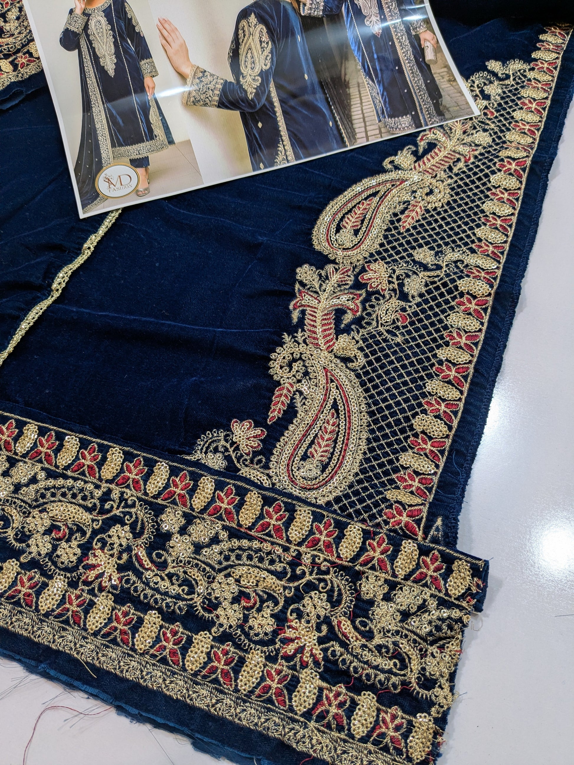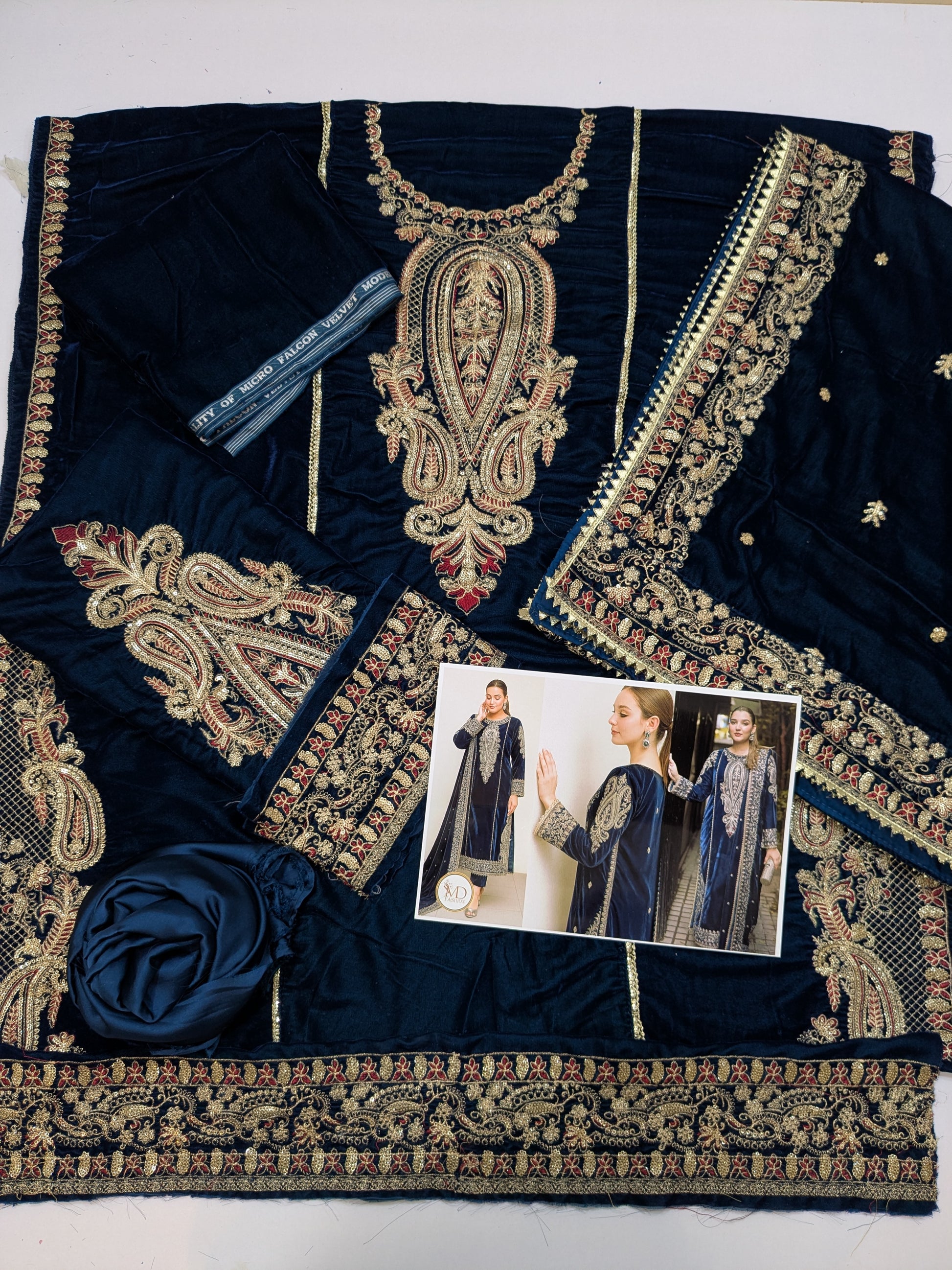 🔸Velvet Shirt (Length with Border 45" Front width 34" Back width 34")