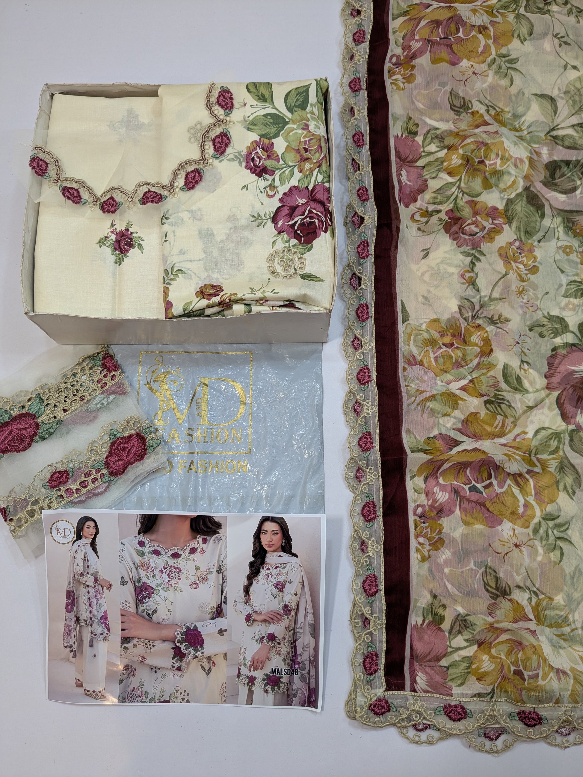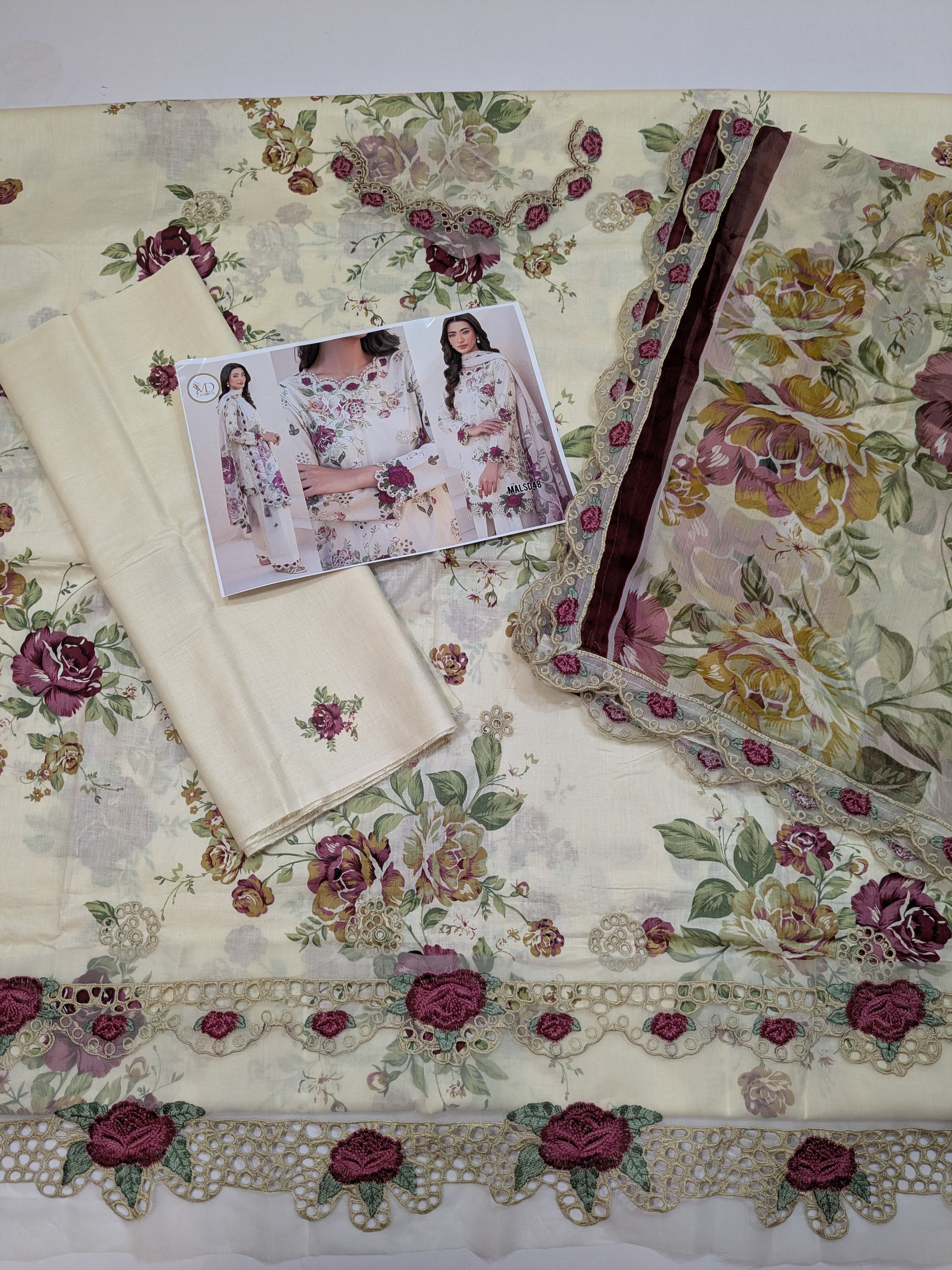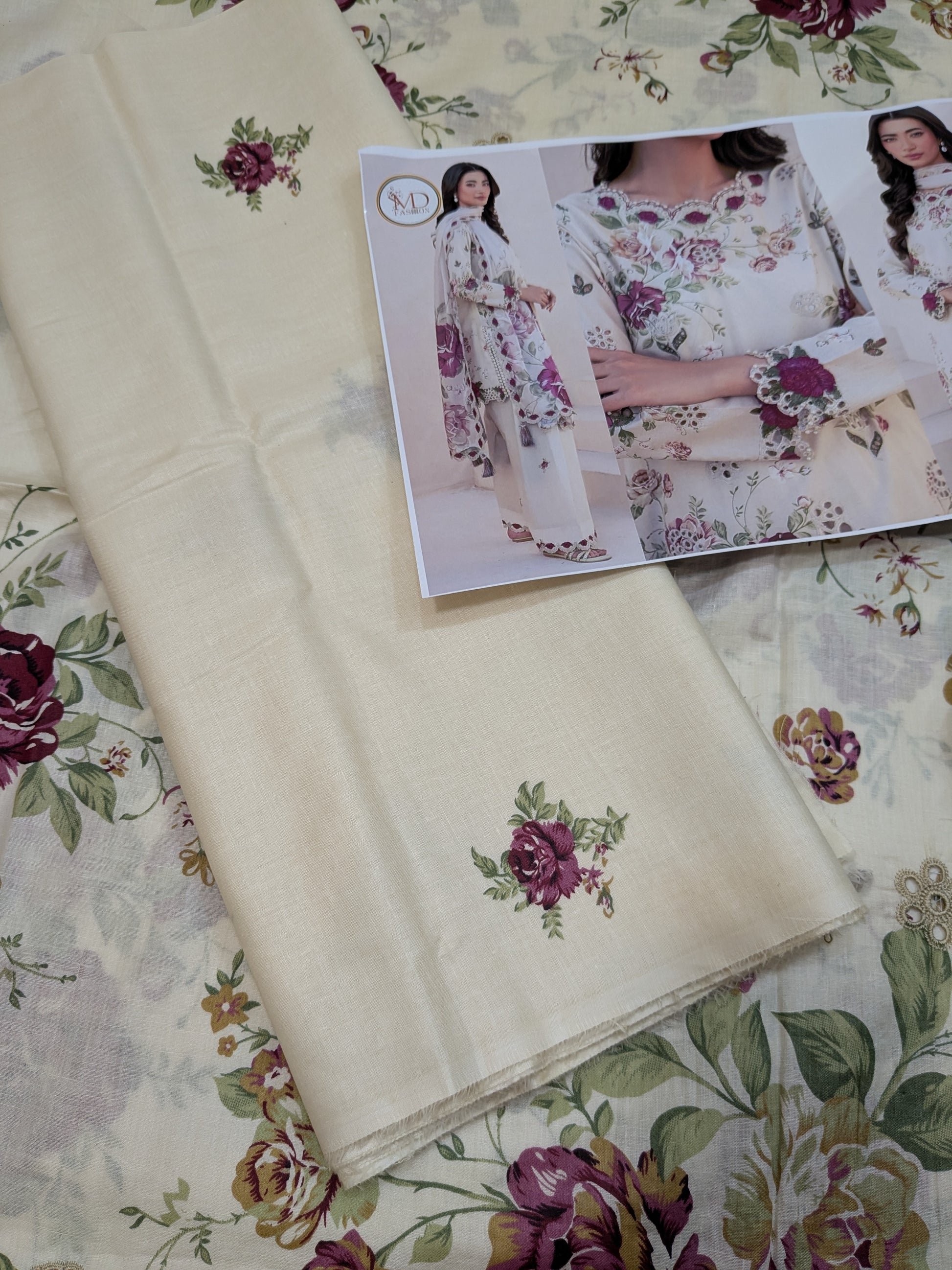 IZNIK CHIKENKARI EMB LAWN ROSE PRINT