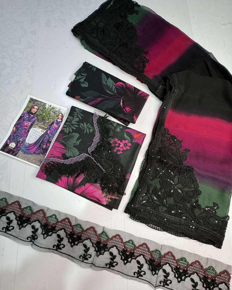 Iznik Demanded Lawn With Multi Motiv Border Duppata