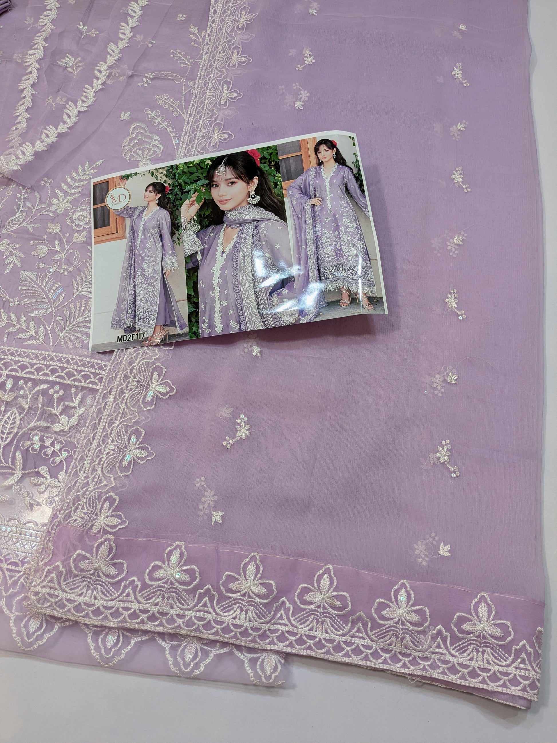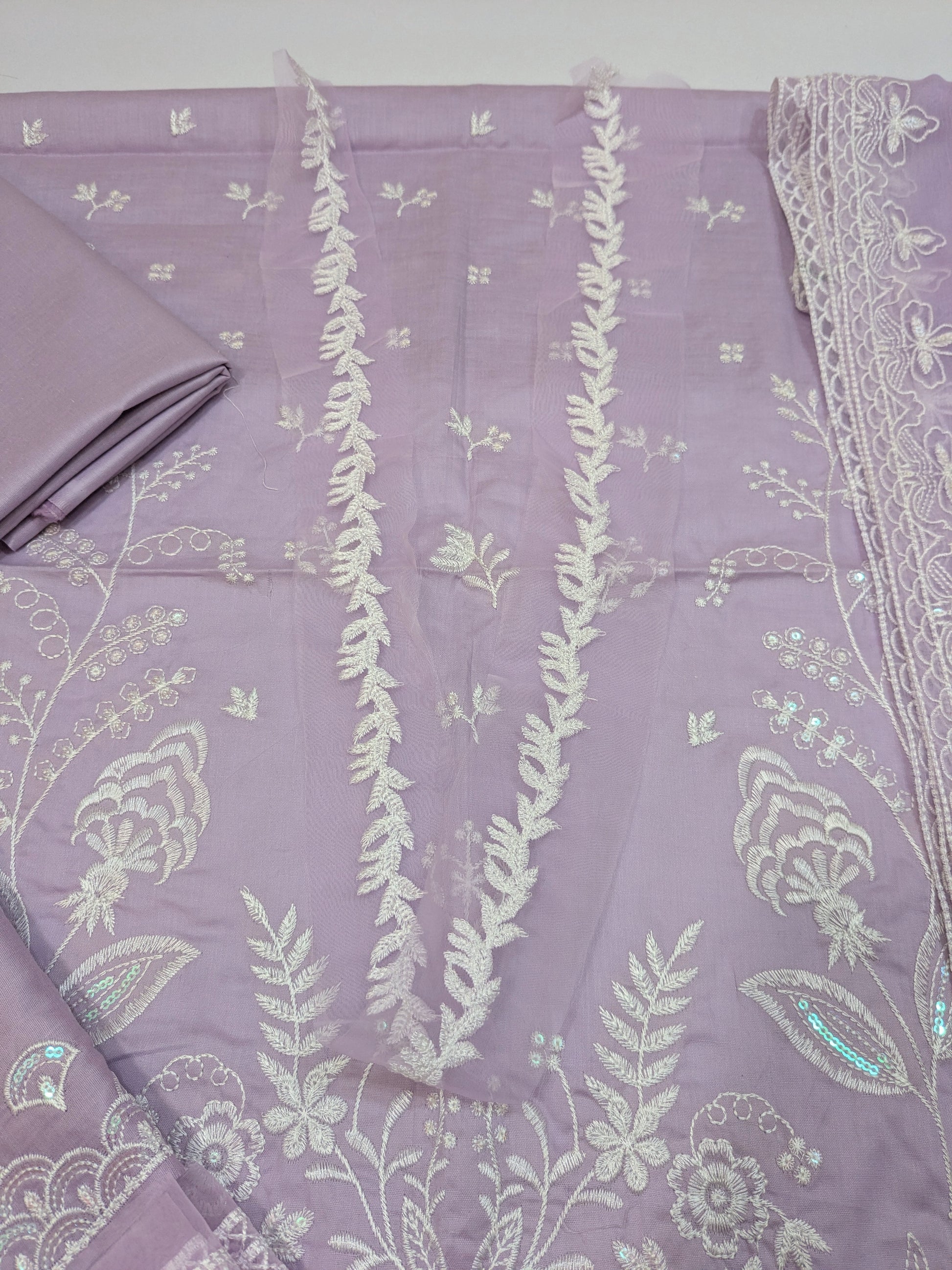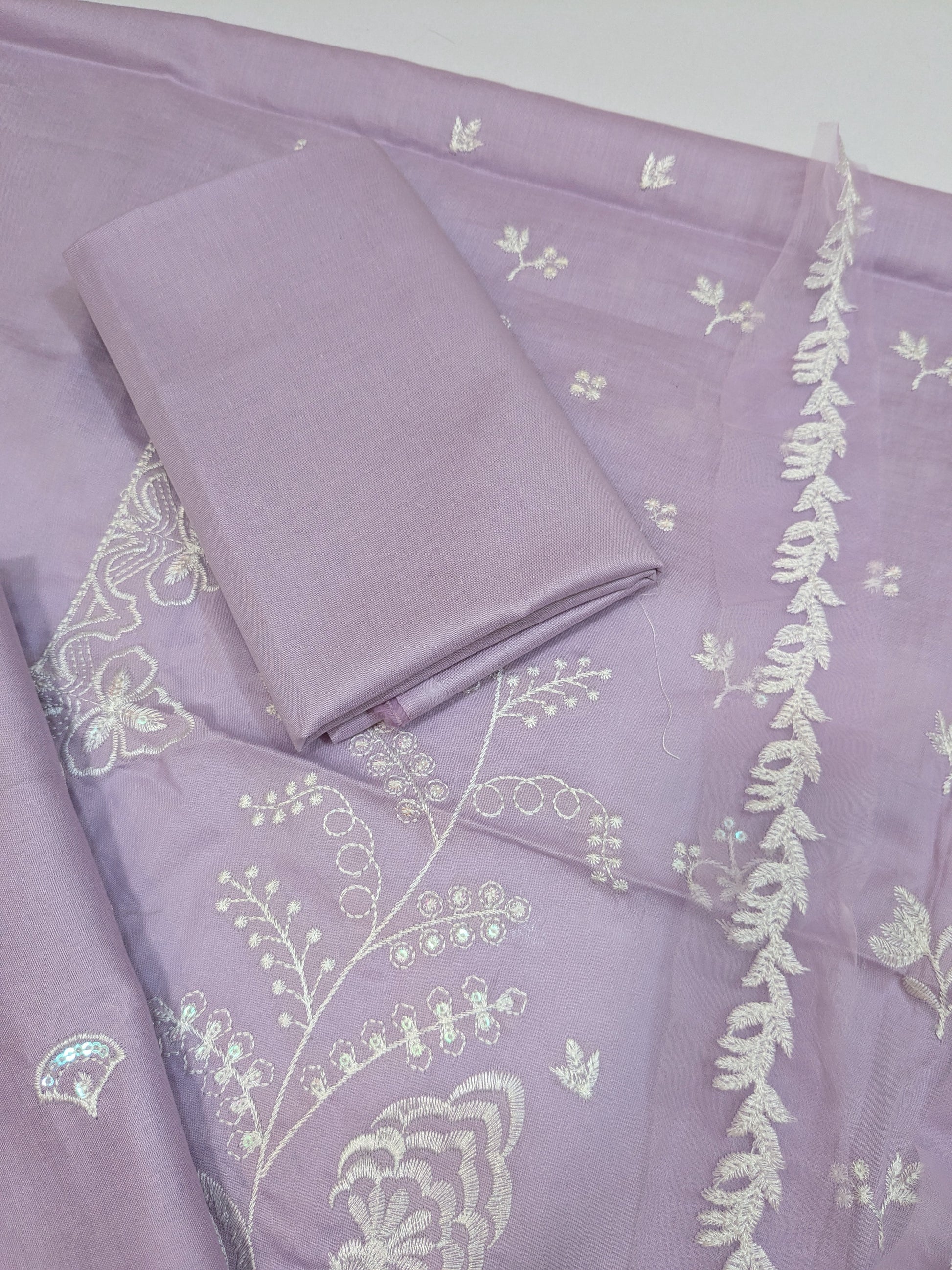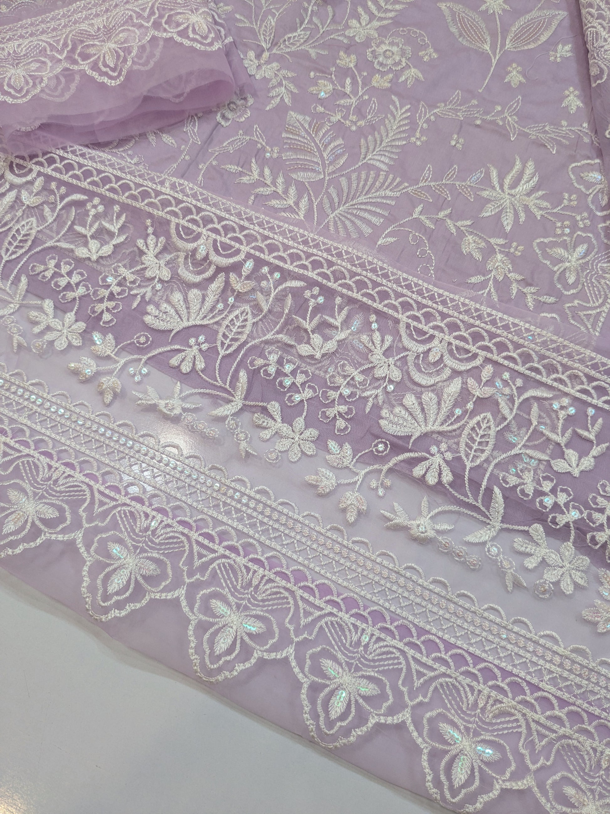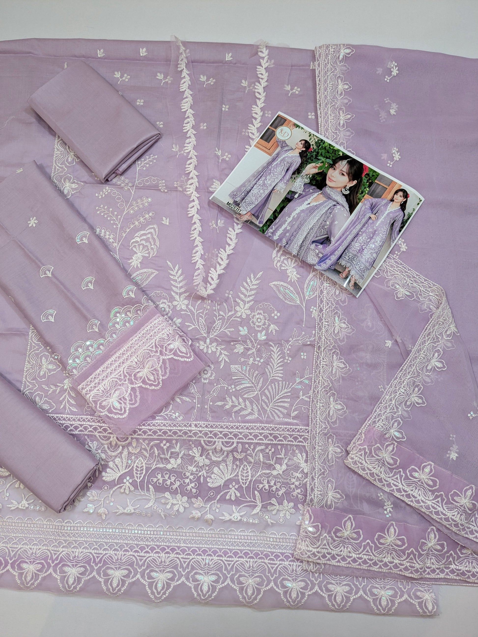 MAHIRA LUXURY LAWN LILAC WITH WHITE EMBROIDERY