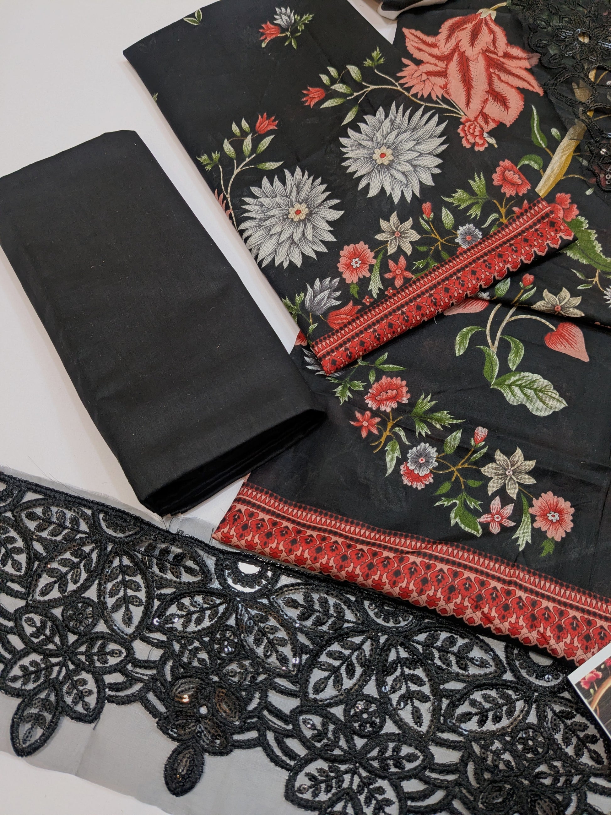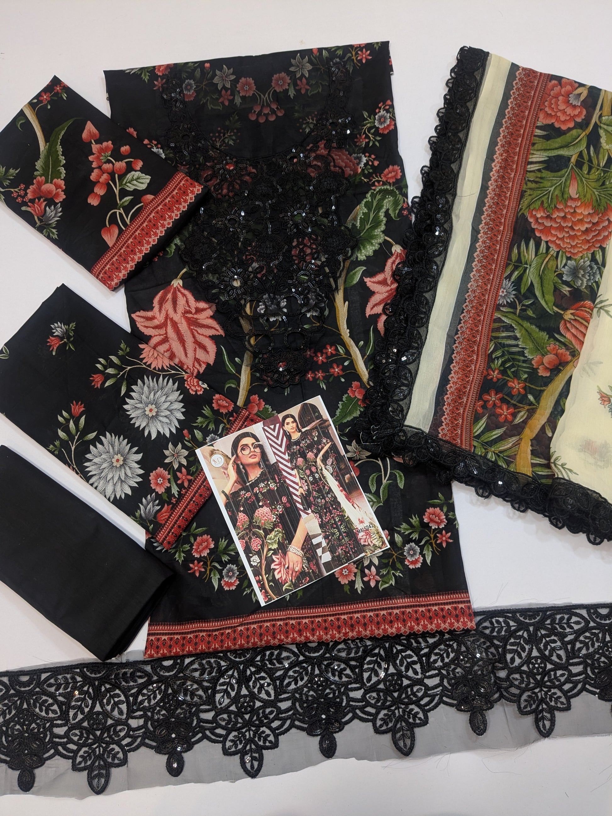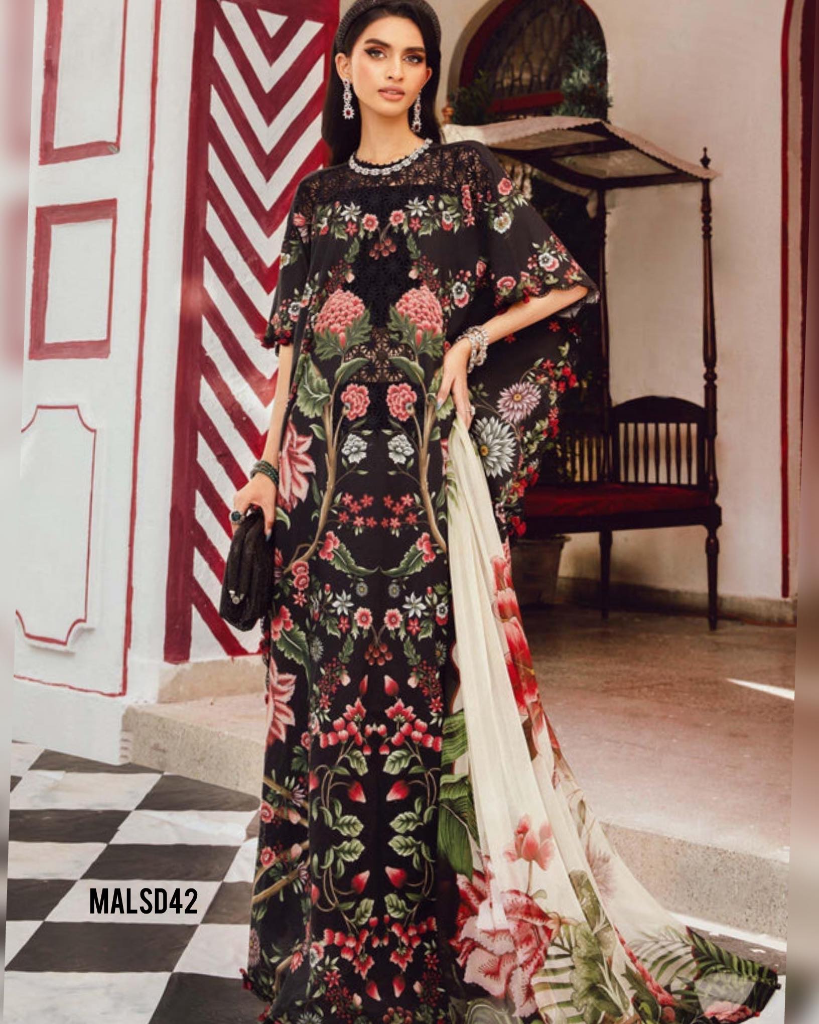 MARIA B BLACK 27B LAWN DRESS WITH READY CHIFFON DUPPATA MAROON