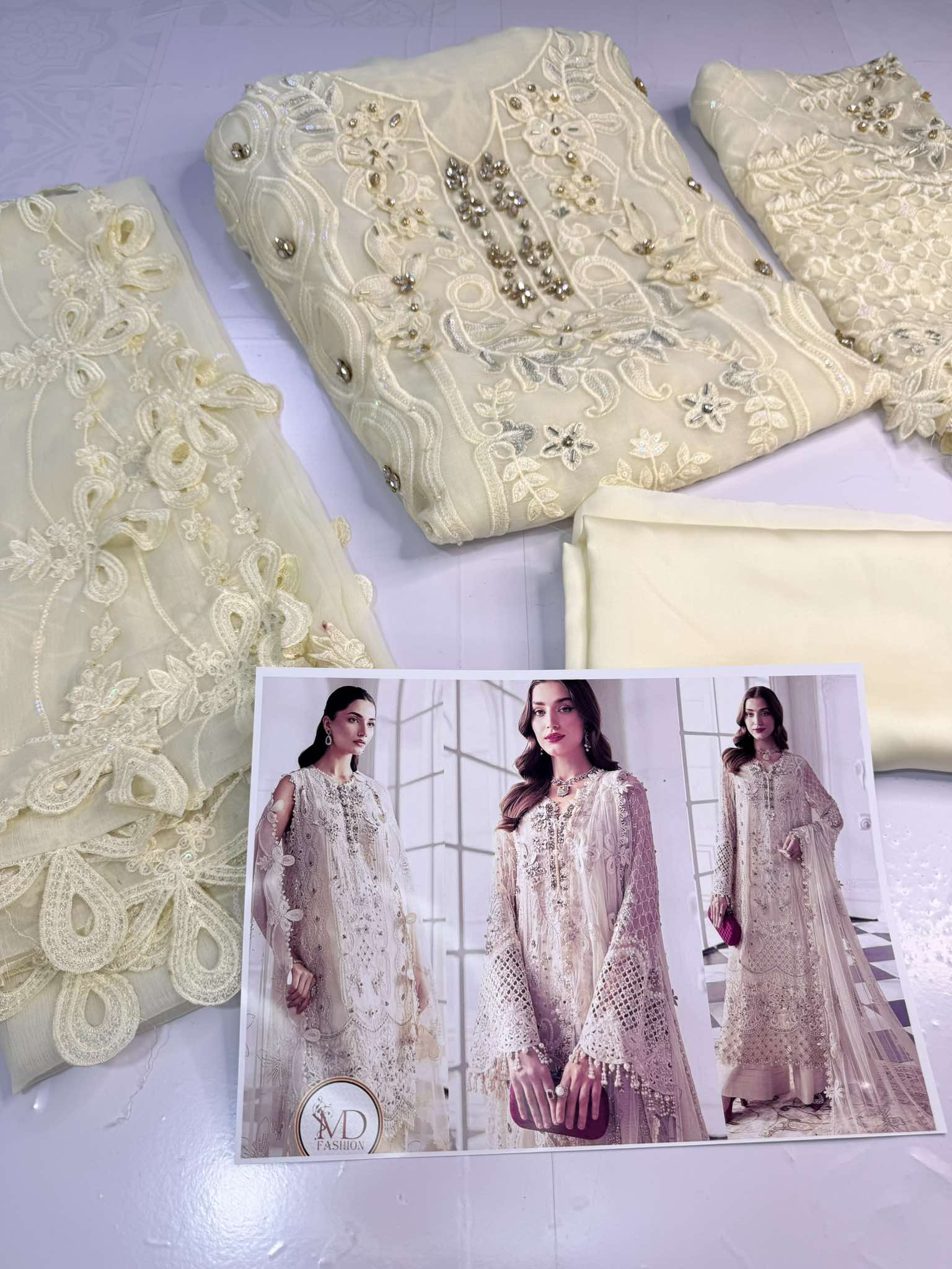 Maria B Cream White Chiffon Embroidered Suit