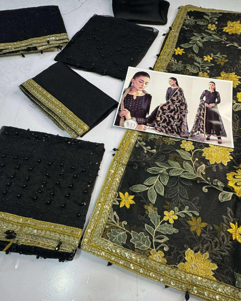 Maria B Jet Black Organza Dress With Heavy Duppata