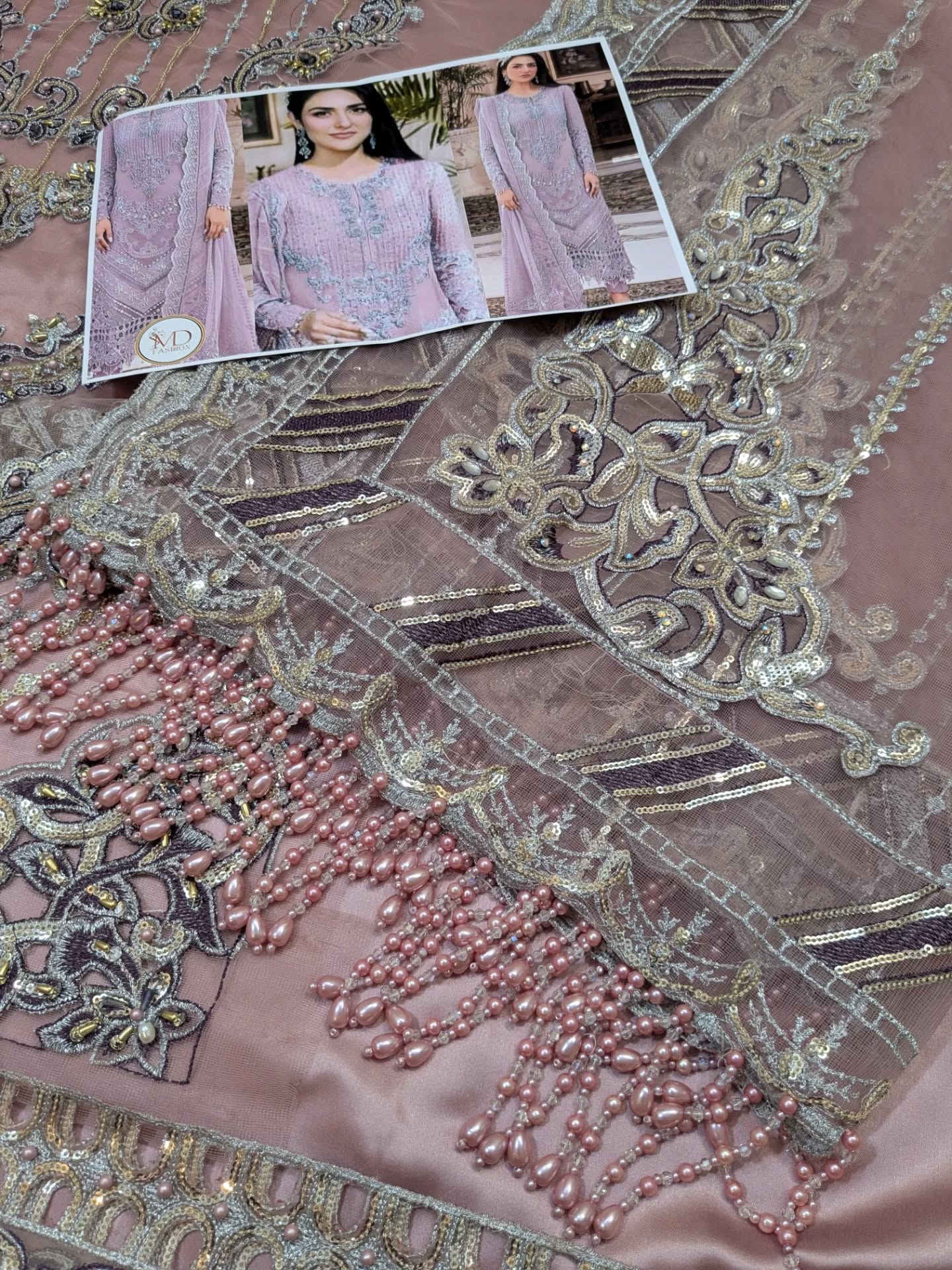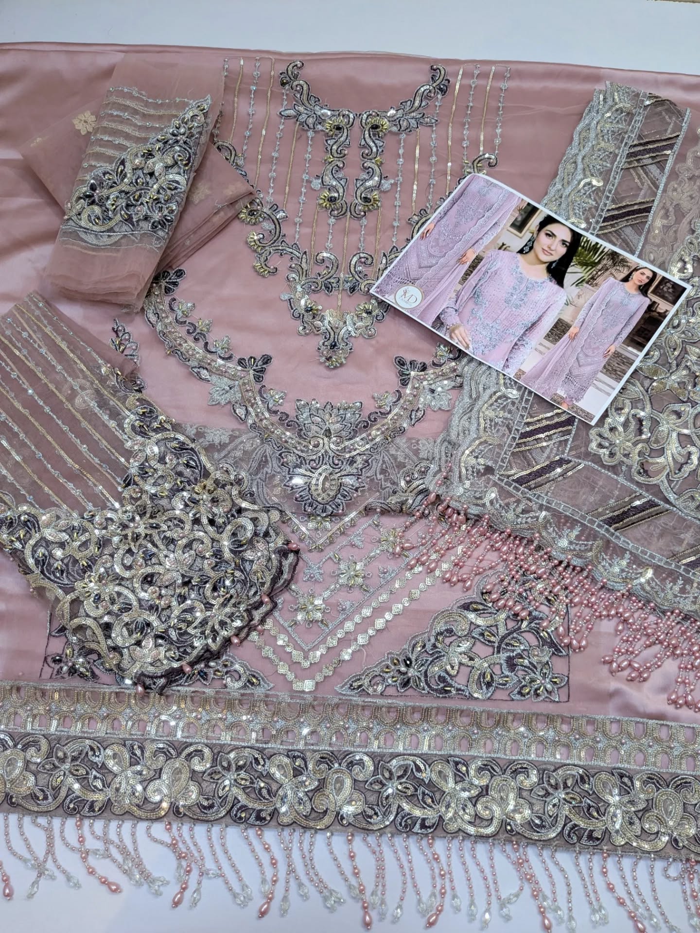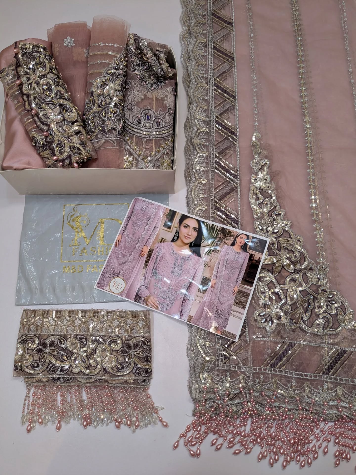Maria B Premium Quality Onion Pink Tassels Net Dress
