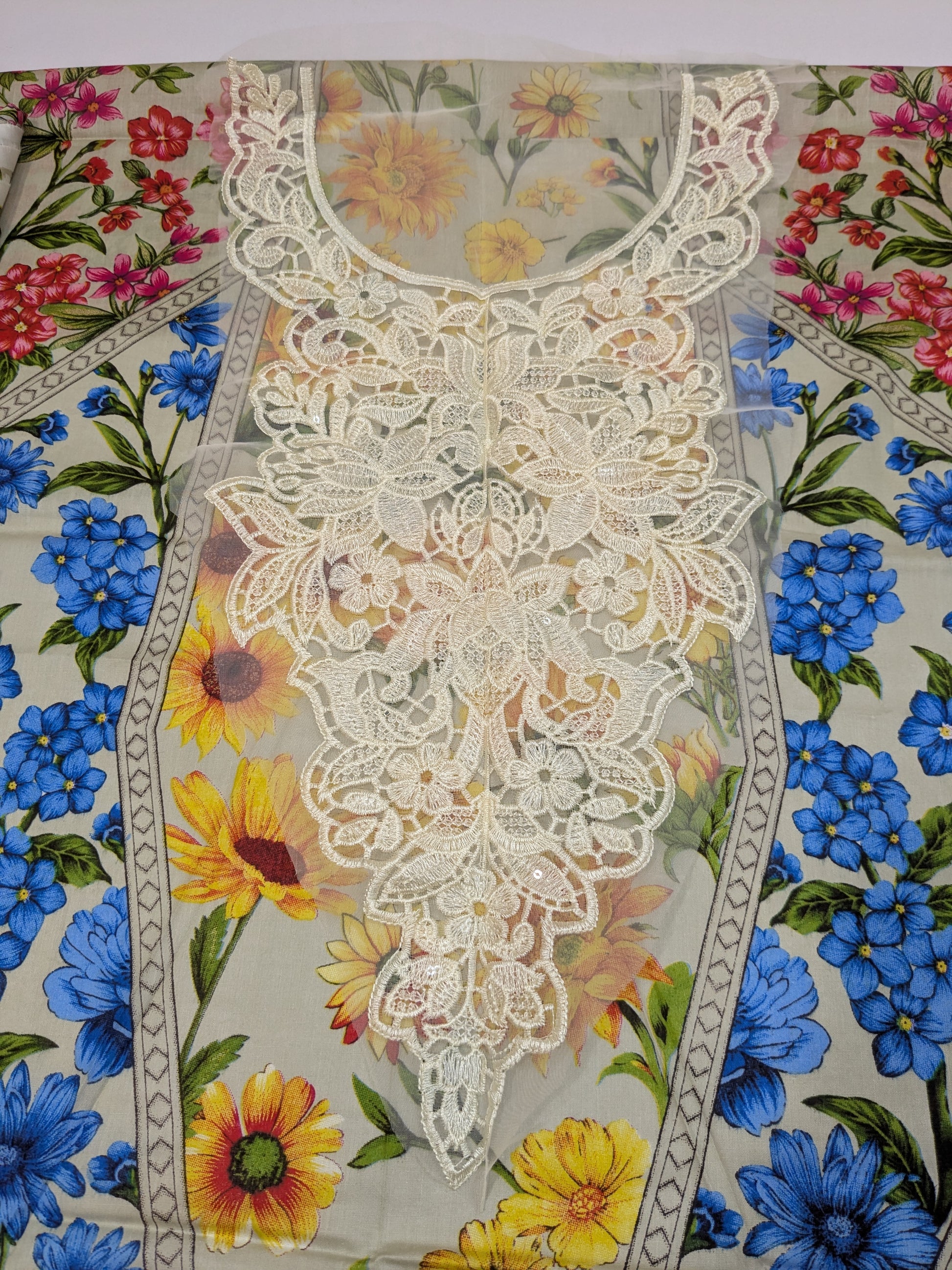 🔸Pure Lawn Shirt (Length with Border 44" Front width 38" Back width 38")