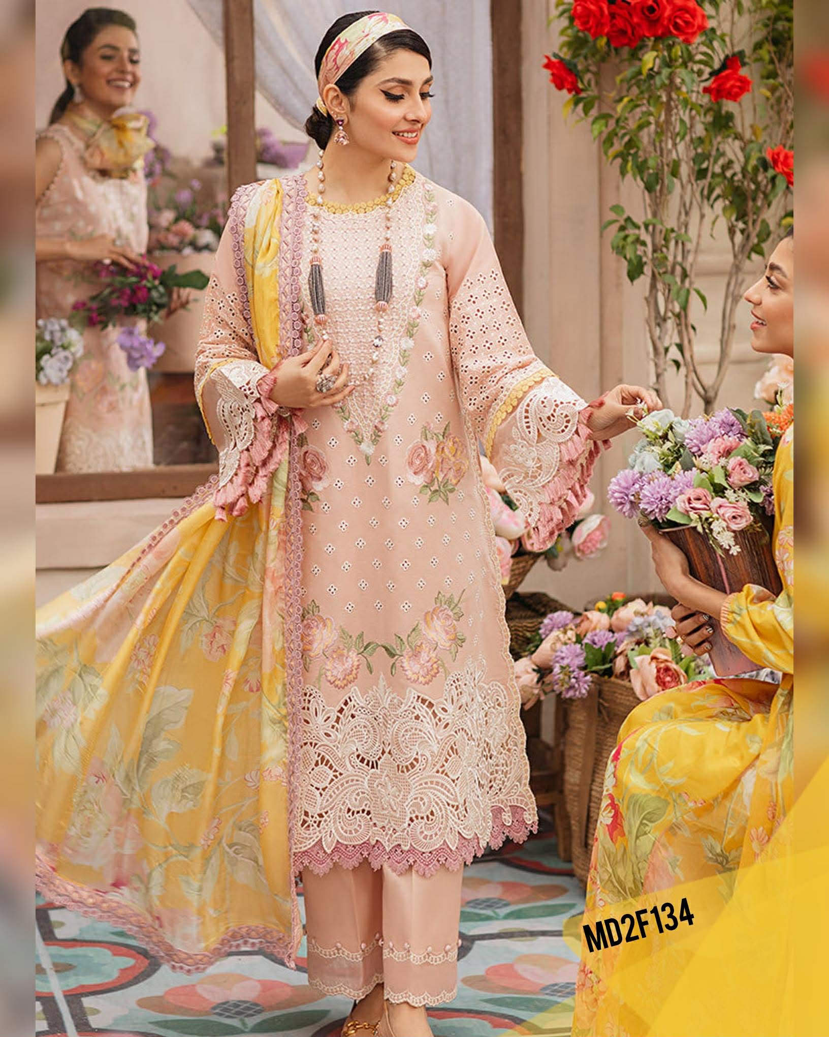 MUSHQ PINK LEMON LUXURIOUS CHIKENKARI LAWN
