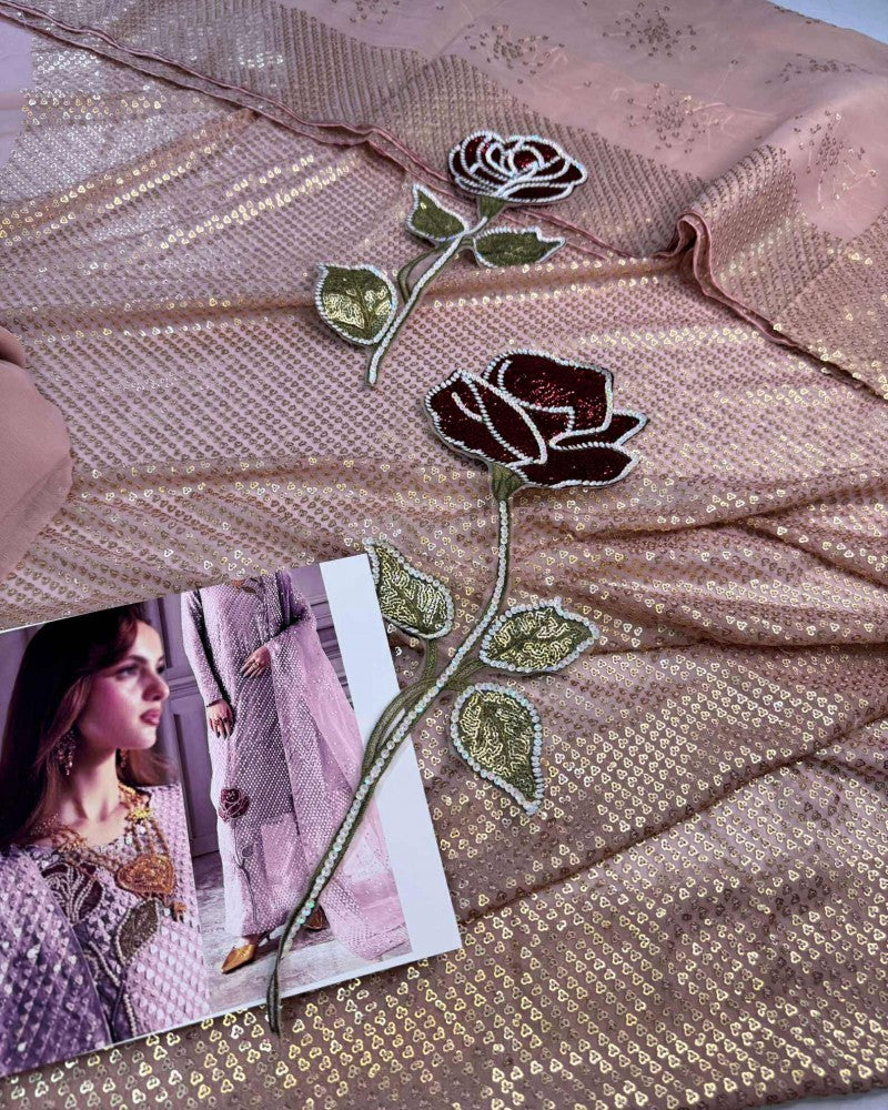Nureh Twinkle Tea Pink Sequence Embroidered