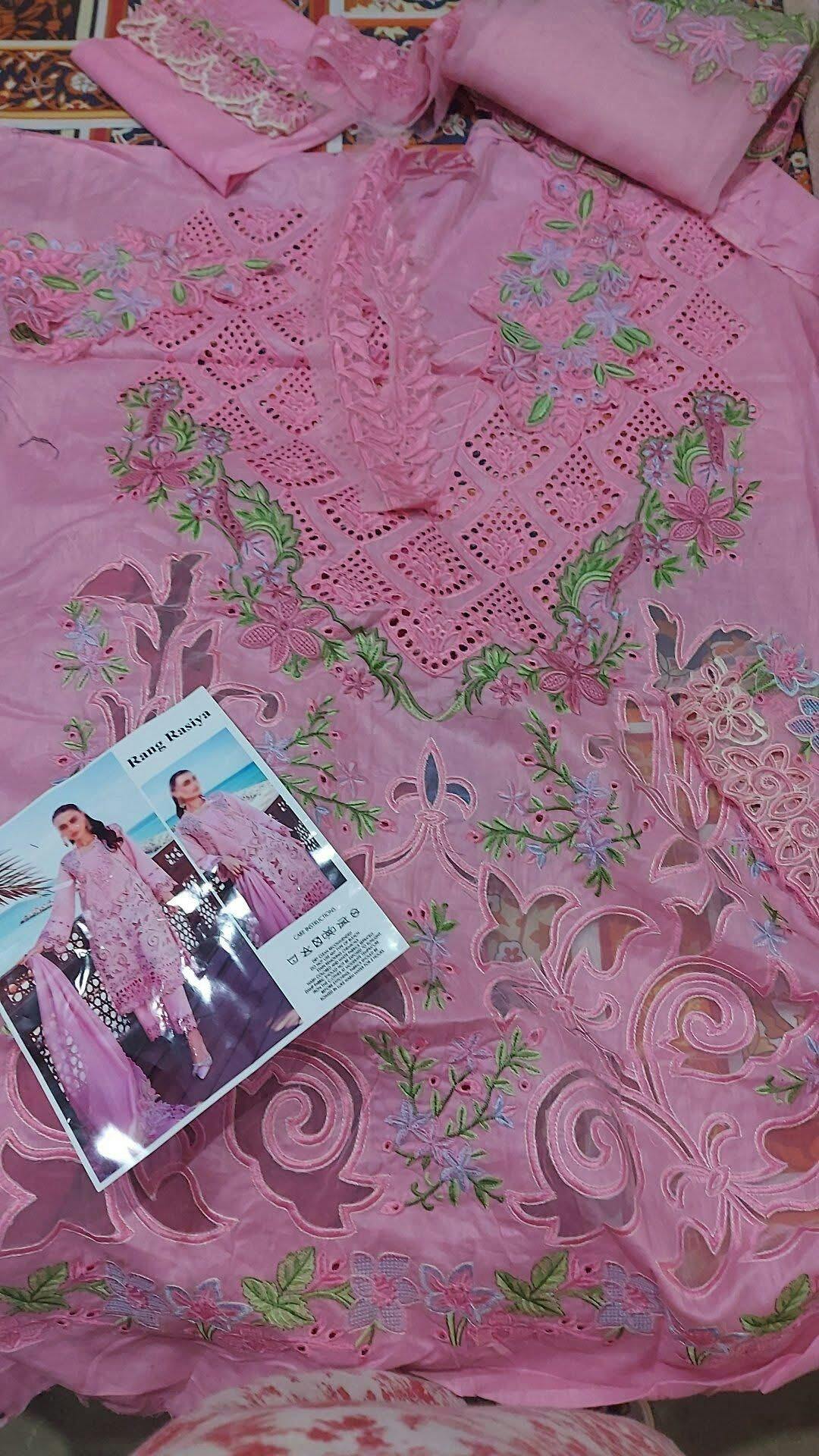 RANG RASIYA NATALIA ROSE PINK LUXURY CHIKANKARI LAWN 3 PIECE