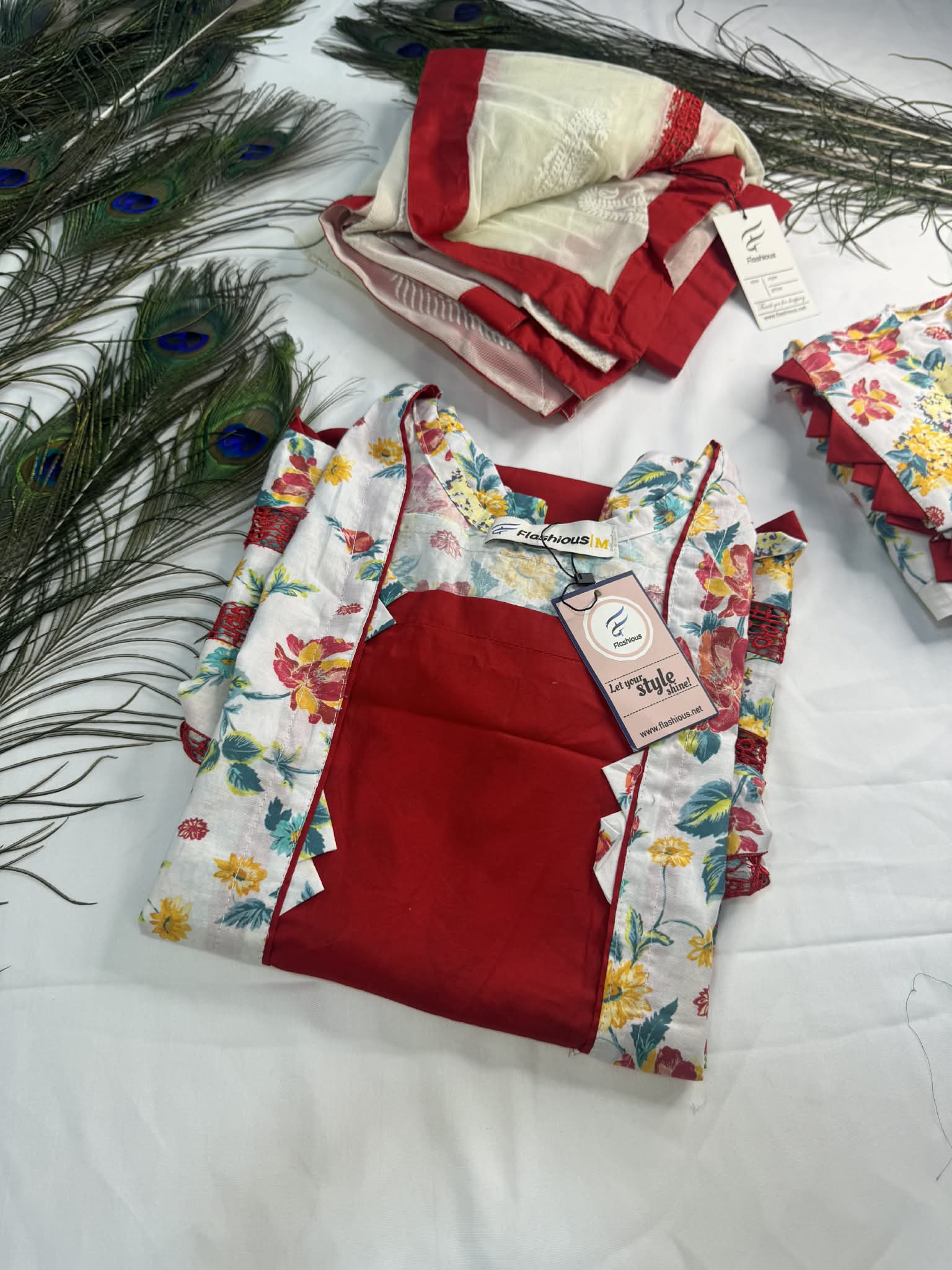 RED WHITE STITCHED LAWN 3PCS