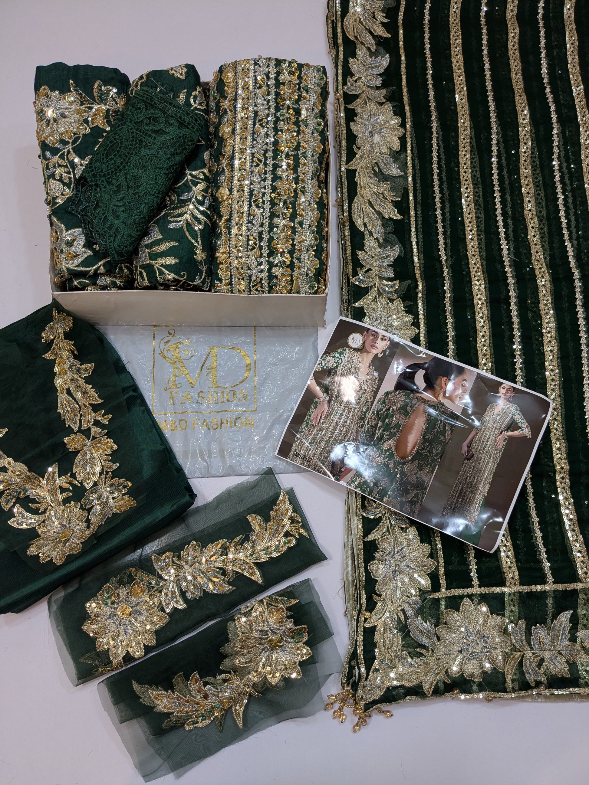 SANA SAFINAZ GREEN PREMIUM RAW SILK HAND EMBELLISHED 3 PIECE