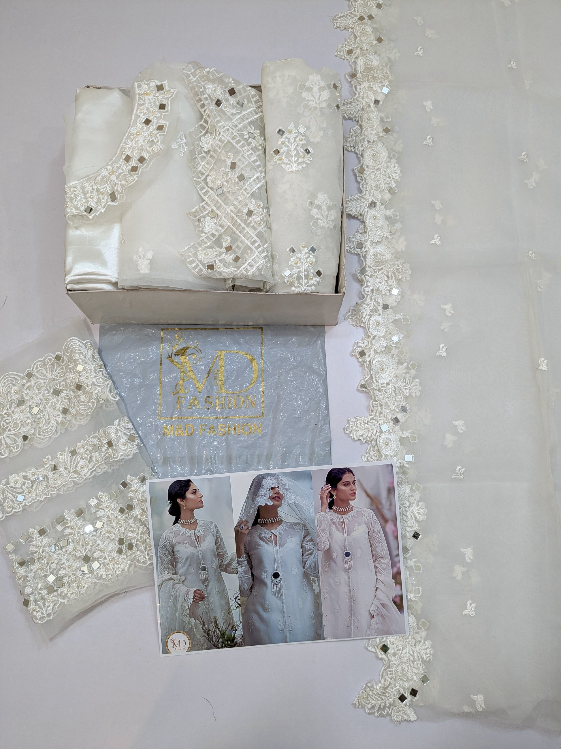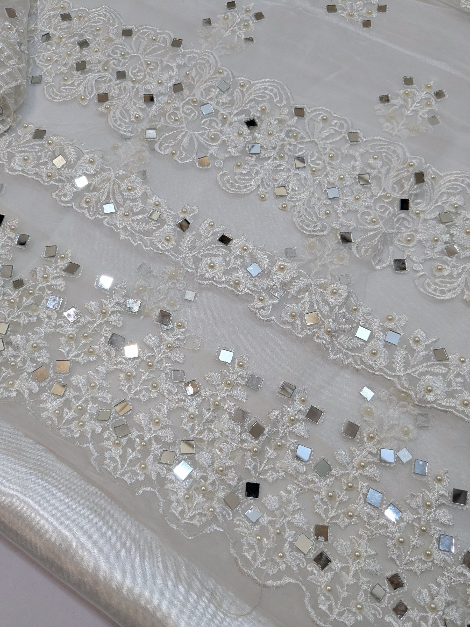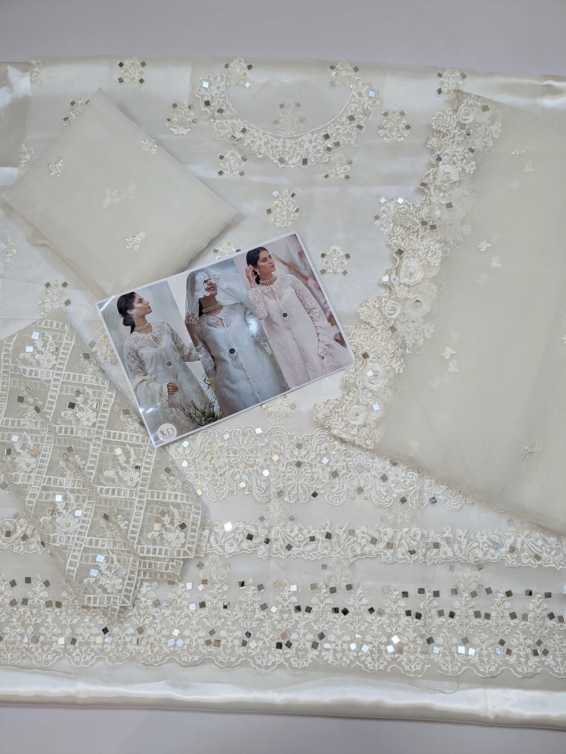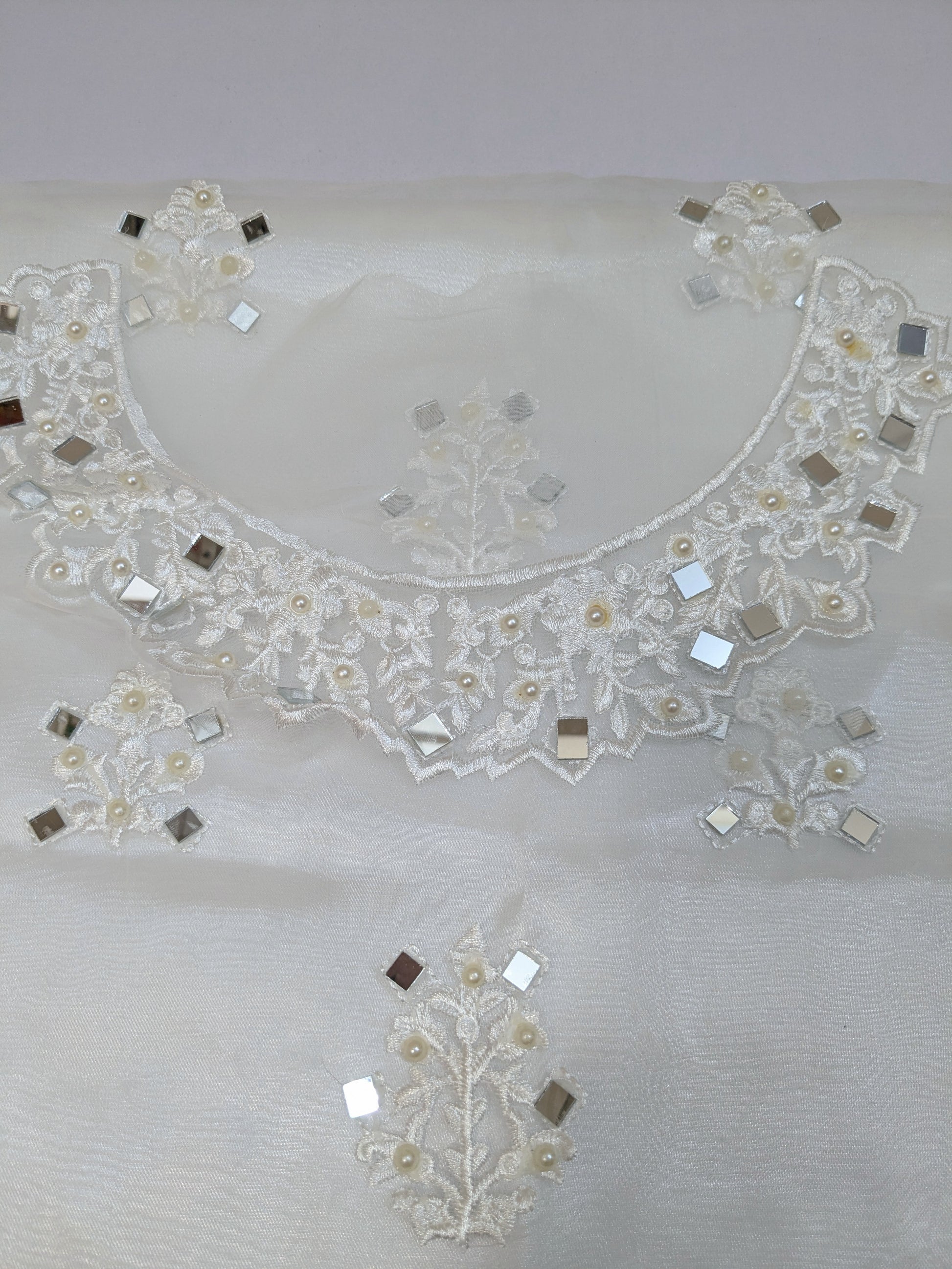 ZAINAB SALMAN WHITE MIRROR WORK 3PCS UNSTICH