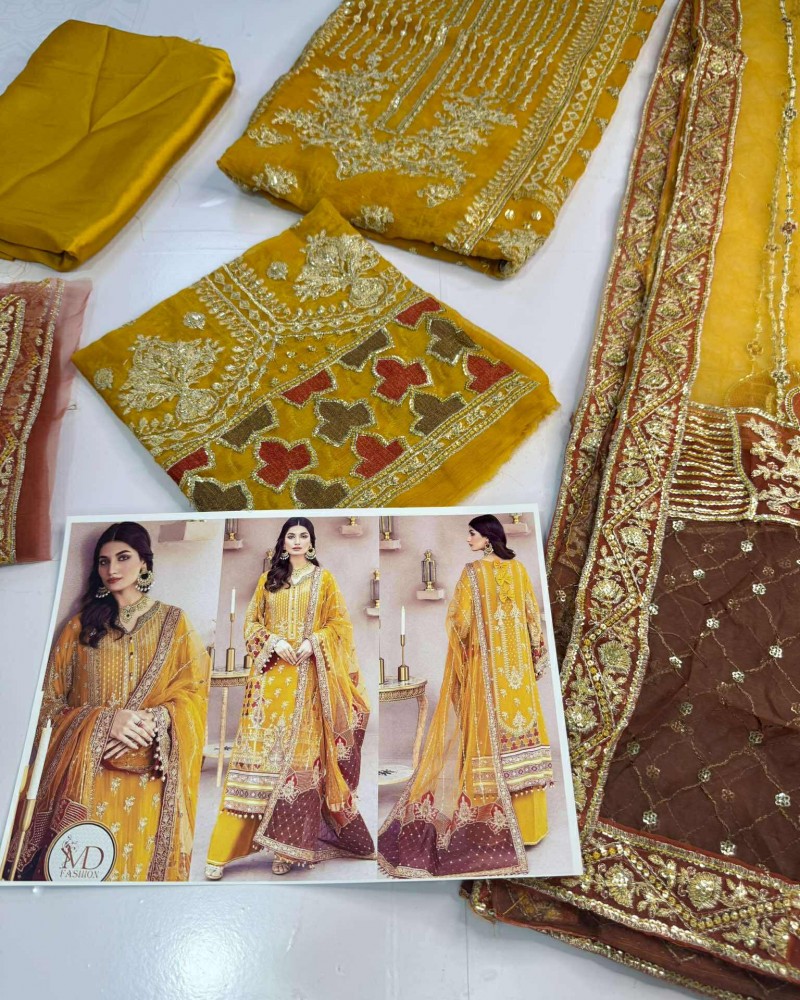 Adan Libas Mustard Maroon Embroidered Haldi dress