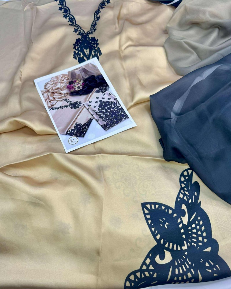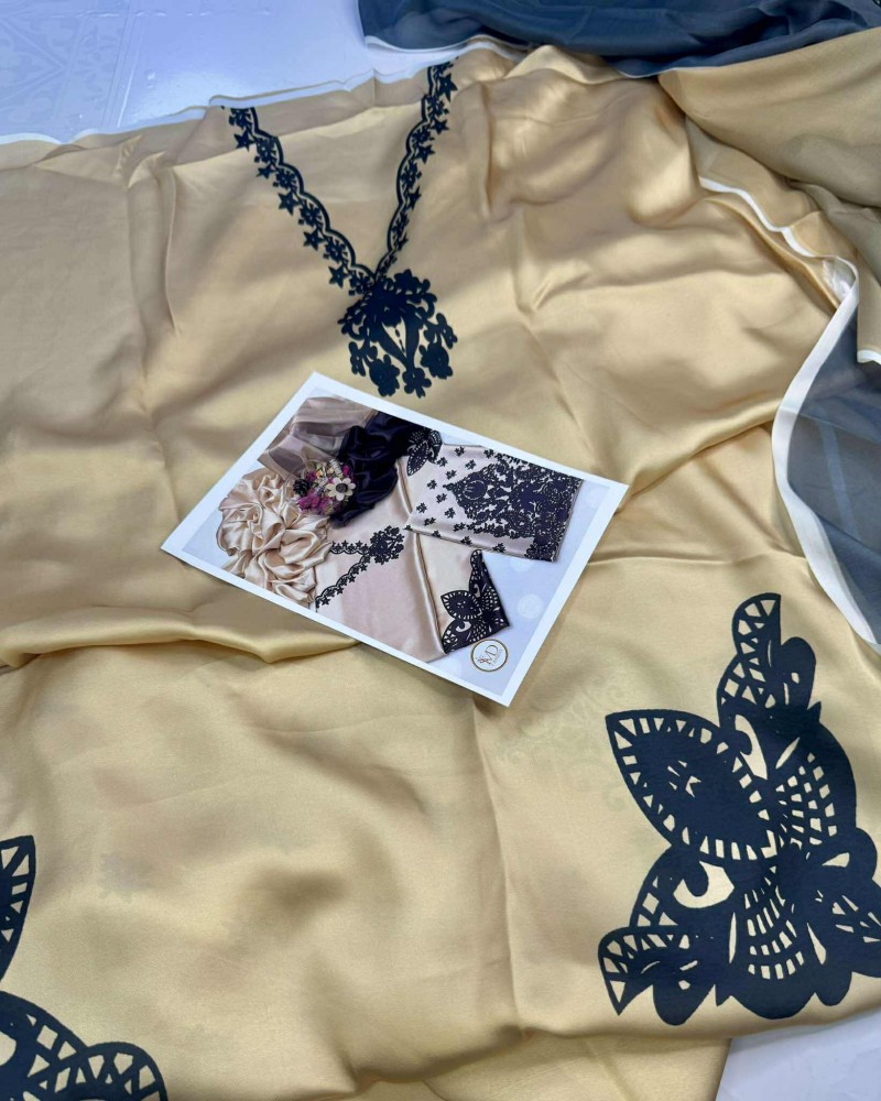 Cream with Black Charmeuse SILK 3pcs