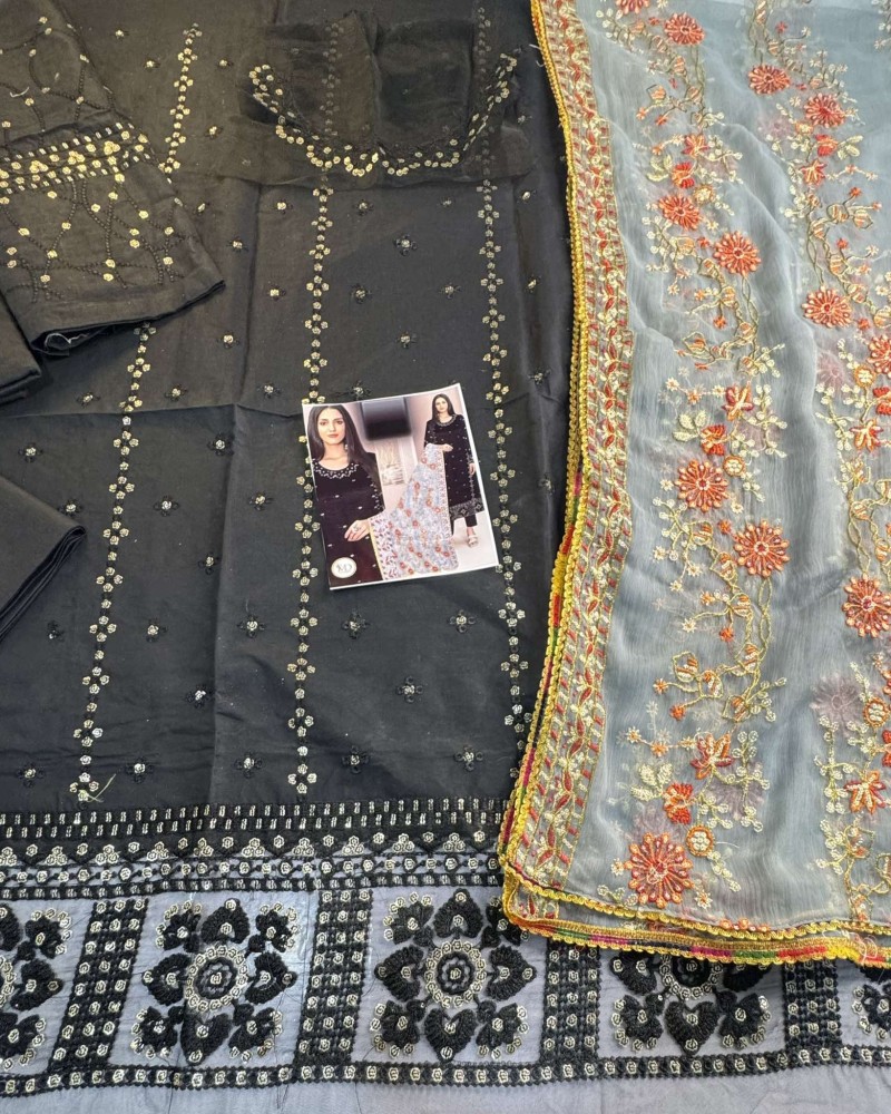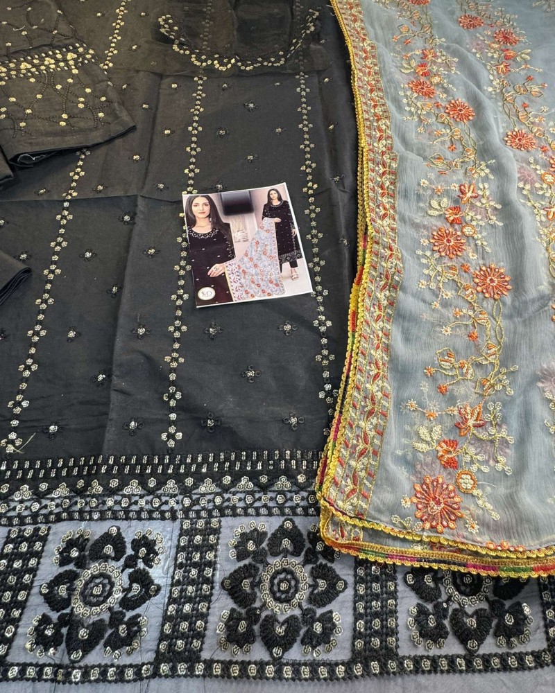 30% Adan's Libas Nevy Blue Adda work with Skin Dupatta